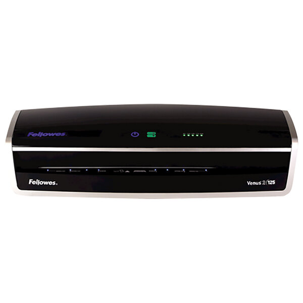Strengthen your signs, flyers, and other documents with this Fellowes 5734801 Venus 2 125 12" laminator. Designed for simple, one-step operation, this laminator is capable of handling 3, 5, 7, and 10 mil thick thermal pouches for documents up to 12" wide. The machine requires just 4 minutes to warm up, and it notifies you with a light and an audible alert when it's ready to use. With its intelligent AutoSense feature, the unit can automatically detect pouch thickness for effortless use. Or, you can select your settings manually on the user-friendly, push-button display.