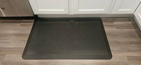 Reduce fatigue while standing and working with this Fellowes 870700 3' x 2' black anti-fatigue wellness mat! This cushioned anti-fatigue mat lets you keep up energy for longer periods of time when working at standing desks. Great not just for offices, it is perfect for use anywhere long periods of standing are required like workstations, service counters, or breakrooms.