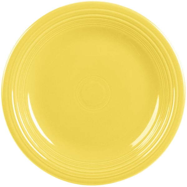 Showcase your freshly-prepared entrees and decorative arrangement of sides with this Fiesta® Dinnerware from Steelite International HL466320 sunflower 10 1/2" dinner plate! Thanks to this plate's concentric design, your guests' eyes are drawn to the scrumptious food. Plus, this contemporary plate adds a splash of color to your restaurant, catering business, or hotel. Its luminous, lead-free glaze and sunflower color complements the decor of your kitchen or restaurant atmosphere. Fiesta® Dinnerware from Steelite International's line offers an extensive variety of colors, so you can stick to your favorite hue or mix and match colors! This piece contains Alphalain® which is made up of alpha aluminum material. Alphalain® helps to reduce chipping, breakage, and scratches commonly caused by the wear and tear of everyday use, while enhancing durability and also providing superior heat retention.