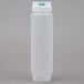 Practice sanitary food rotation in your sandwich shop, deli, or cafe when you use this convenient FIFO Innovations 16 oz. clear double wide-mouth squeeze bottle with thin dispensing valve! For efficient product rotation and to help minimize waste, condiments that were loaded first will be dispensed first. Just open the top label cap, load with your selected topping, and then pour using the convenient dispensing cap on the bottom. The dispensing tip never touches your work surface or your food, so you can keep a hygienic prep space. Simply pick up the bottle, squeeze, and it will naturally dispense downward so there's no flipping or shaking.