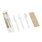 - Individually wrapped with a fork, knife, spoon, and napkin
