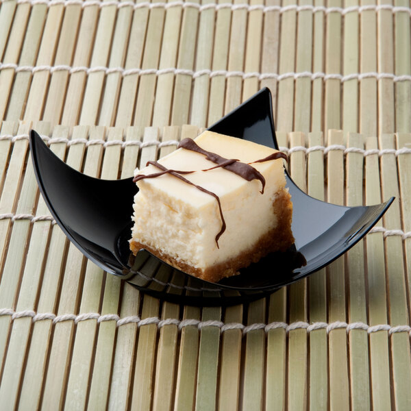 Delight guests as you serve your savory and sweet samples, appetizers, or desserts with this Fineline 6203-BK Tiny Temptations 2 3/4" x 2 3/4" Tiny Tortes disposable black plastic tray! This lightweight polystyrene tray provides the perfect setting for trendy and petite offerings. Perfect for your cocktail party, upscale catered event, or special occasion, the unique, highly-decorative form provides versatility when it comes to presenting your delicate culinary creations.