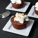 Delight guests as you serve your sweet and savory creations with this Fineline B6200-WH Tiny Temptations 3" x 3" white plastic tiny tray! This heavyweight plastic tray provides the perfect setting for trendy and petite offerings like bite-sized hors d'oeuvres and desserts. Use it for savory bites of sushi or sweet chocolate truffles. The plastic construction is also a convenient, cost-efficient alternative to fine china. Plus, it features a high lip to help prevent anything from sliding off the tray.