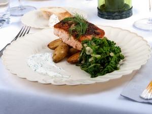 This plate provides the elegance of chinaware without the cost. Plus, it's not as fragile, which makes transportation and stacking easy.