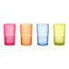 Light up the night with these Fineline Quenchers 4115-MIX 1.5 oz. mixed neon hard plastic shooter glasses. These plastic shooters are a durable, vibrant alternative to traditional, permanent glassware. They're bright enough to see in dim lighting, light enough to make serving efficient, and completely disposable, making cleanup a breeze. Your customers will love the variety of colors to choose from: blue, yellow, orange, and red. Delight your patrons with complex shots and make this night one to remember.