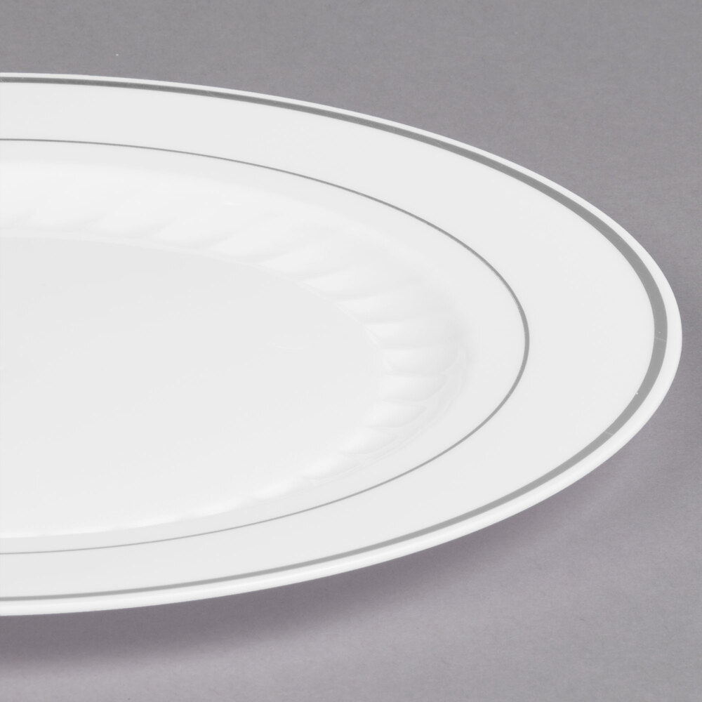 - Item #: 999509whFineline Silver Splendor 509-WH 9" White Plastic Plate with Silver Bands - 12/Pack