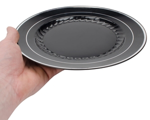 Two metallic silver bands trace the outermost rim of each plate for an elegant appearance, no matter the occasion. At the same time, the sleek black surface of the plate provides a pleasing contrast to the silver accent bands, ensuring a professional presentation, fit for any event.