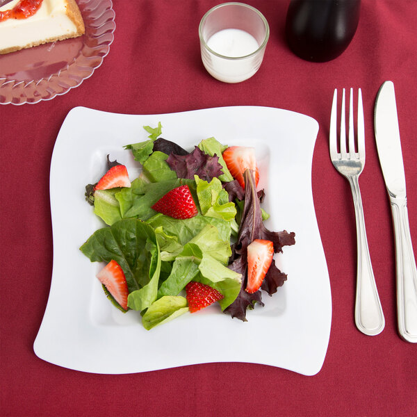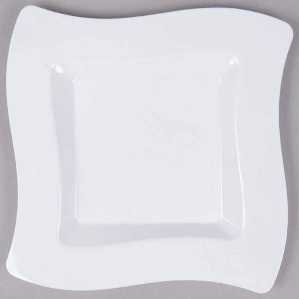 This Fineline Wavetrends 108-WH 8" square plate makes a stylish addition to your party or event!
