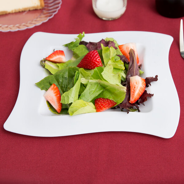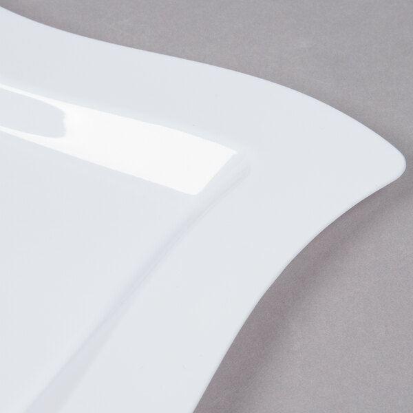 Let your imagination roll with the tide with this Fineline white square plate. It features ocean-inspired waved edges, making a bold statement about your cuisine. No matter what you serve, the wide rim and flowing lines of the Wavetrends collections will frame your food in a stylish way for a memorable presentation.