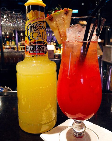 Sweet and sour mix is used in an endless number of popular drinks, including whiskey sours, Long Island iced teas, margaritas, and other sours recipes. Since you know that you'll use a lot of it, make sure your bar is constantly stocked with plenty of Finest Call Premium sweet and sour mix! It has a robust, tangy taste and a vivid yellow color.