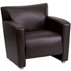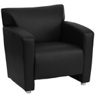 Provide a way for guests or customers to sit comfortably in your office, lounge, or waiting area with this Flash Furniture 222-1-BK-GG Hercules Majesty black leather chair with aluminum feet! With a distinguished, sculpted back and seat, this chair lends an upscale look to any room. The brushed aluminum feet also ensure a sturdy and stable foundation while enhancing the chair's overall professional appearance.