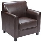 This modern, upscale chair's cushions are filled with thick, high-density foam that's fire retardant to minimize safety concerns. The cushions are fixed to prevent them from moving around, ensuring optimal comfort and an organized appearance every time. Additionally, it's upholstered with LeatherSoft, a material that combines leather and polyurethane, for superior strength and softness. To clean, simply wipe it down with a mild solution and soft, damp cloth. Create a comfortable atmosphere within your establishment with the help of this Hercules Diplomat chair.