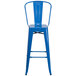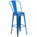 Create an urban look and feel to your dining area with this Flash Furniture CH-31320-30GB-BL-GG 30" blue galvanized steel bar height stool with vertical slat back and drain hole seat! While its curved, vertical slat back provides firm spinal support, the flat, drain hole seat is easy to clean and ensures guests are at a comfortable height to enjoy your signature drinks, appetizers, entrees, and desserts. The built-in footrest also provides additional comfort.
