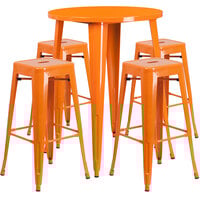 Flash Furniture CH-51080BH-2-30CAFE-OR-GG 24" Round Orange Metal Indoor / Outdoor Bar Height Table with 2 Cafe Stools