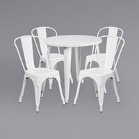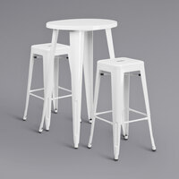 Complete the look of your indoor or outdoor dining area with this Flash Furniture CH-51090BH-4-30SQST-WH-GG 30" round metal indoor / outdoor bar height table with 4 square seat backless stools. Made of durable metal, this table is built strong to withstand daily, heavy-duty use at your restaurant or cafe. It also features a smooth, 1 1/4" thick top that makes it simple to wipe down between guests and busy shifts. Thanks to the 30" round top, this table is perfect for seating guests at your cafe, bistro, or bar.