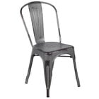 Instantly add an urban look and feel to your dining area with this Flash Furniture ET-3534-AB-GG distressed antique blue stackable metal chair with vertical slat back and drain hole seat! While its curved, vertical slat back provides firm spinal support, the flat, drain hole seat is easy to clean and ensures guests are at a comfortable height to enjoy your signature drinks, appetizers, entrees, and desserts. It can also be stacked with up to 8 other chairs to maximize storage space.