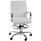Complete any upscale office setting with this Flash Furniture GO-2286B-WH-GG mid-back white LeatherSoft swivel drafting chair with adjustable foot ring! With a mid-back, LeatherSoft design, this chair easily provides a stylish yet comfortable solution to office seating. The LeatherSoft construction, which is comprised of a mixture of leather and polyurethane, offers extra support, softness, and durability, while built-in lumbar support is good for back health and alleviates the aches and pains associated with sitting in a poor quality chair for long hours.