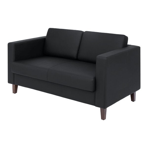 Complete your office, lounge, or waiting area's sleek, professional look with this Flash Furniture Hercules Artemis black LeatherSoft loveseat! Thanks to its smooth arms and plush feel, this loveseat offers a contemporary touch to any room and provides guests with a way to comfortably sit. This loveseat features a discreet charging bank on the right side of the loveseat which includes 2 AC outlets, 2 USB ports, and 1 USB-C port to accommodate most chargers. The hardwood frame and wooden feet ensure a sturdy and stable foundation while blending in seamlessly with the loveseat's overall appearance.