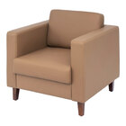 Complete your office, lounge, or waiting area's sleek, professional look with this Flash Furniture Hercules Artemis cognac LeatherSoft chair! Thanks to its smooth arms and plush feel, this chair offers a contemporary touch to any room and provides guests with a way to comfortably sit. This chair features a discreet charging bank on the right side of the chair which includes 2 AC outlets, 2 USB ports, and 1 USB-C port to accommodate most chargers. The hardwood frame and wooden feet ensure a sturdy and stable foundation while blending in seamlessly with the chair's overall appearance.