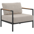 Use this Flash Furniture indoor / outdoor teak accented charcoal patio chair to provide the perfect comfort whether inside or outside your business. With its sleek black metal frame, this chair has teak accented arms and comes with charcoal back and seat cushions. Great for outdoor seating, you can provide extra seating options to your guests at your restaurant or deli. It's also easy to incorporate into your interior design with fixed plastic floor glides that protect hard floor surfaces.