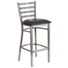 Create a first-rate dining experience for all your patrons with this Flash Furniture XU-DG697BLAD-CLR-BAR-BURV-GG clear-coated ladder back metal restaurant barstool with burgundy vinyl seat. Designed to withstand the daily rigors of high volume use, an 18 gauge steel frame features a ladder back design with welded joints and two curved support bars for exceptional durability. The chair's 2 1/2" thick burgundy vinyl upholstery seat is cushioned for exceptional comfort and is also fitted over CA117 fire retardant padding.