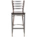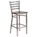 Create a first-rate dining experience for all your patrons with this Flash Furniture XU-DG697BLAD-CLR-BAR-WALW-GG clear-coated ladder back metal restaurant barstool with walnut plywood seat. Designed to withstand the daily rigors of high volume use, an 18 gauge steel frame features a ladder back design with welded joints and two curved support bars for exceptional durability. The chair's 5/8" thick walnut-colored plywood seat is contoured for exceptional comfort.
