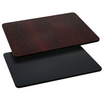 Bring versatility to your dining area with this Flash Furniture XU-RD-36-MBT-GG 36" black / mahogany laminated round table top. From casual eateries to large cafeterias, the reversible design of this top adds versatility to any dining area. Choose between black and mahogany to create the perfect look for day to day operations or special events. The black T-molding provides a finished, polished look while protecting the edge of the table top from bumps and collisions with other tables or furniture.