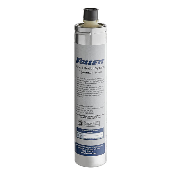 Provide clean ice and water to your customers while prolonging the life of your equipment with the Follett 00130245 water filter cartridge. This cartridge acts as a direct replacement for the original cartridge that came with your Follett ice maker/water dispenser's filtration system. The filter will remove any incoming sediment as small as 0.5 microns and chlorine taste from your water so that you are serving only clean and great tasting ice and water. It also prevents the build-up of limescale, which can take a toll on the internal parts of ice machines/water dispensers.