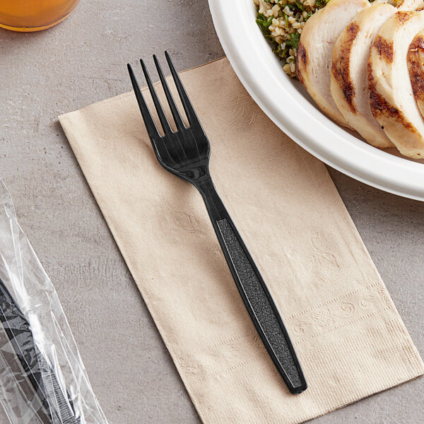 - Item #: 999wbkforkhChoice Black Heavy Weight Wrapped Polystyrene Plastic Fork - 250/Pack
