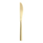 Bring a sleek new look to your table settings with this Fortessa Arezzo Brushed gold 7" 18/10 stainless steel extra heavy weight teaspoon. The Arezzo Brushed flatware collection by Fortessa features a long, slender profile that adds a touch of refinement and modern elegance to any table setting. Each piece in the collection features a flat, square end with a prismatic handle design. The simple and attractive form is complemented by a distinctive brushed finish that will serve to hide scratches or fingerprints, while its sleek gold color adds a modern touch. This teaspoon is perfect for use when serving coffee, tea, desserts, and cereals.