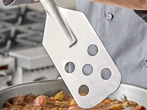 • Allows you to reach the bottom of kettles and pots for effective stirring and even heating