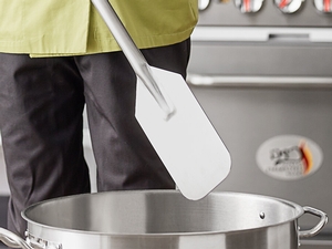 • Allows you to reach the bottom of kettles and pots for effective stirring and even heating