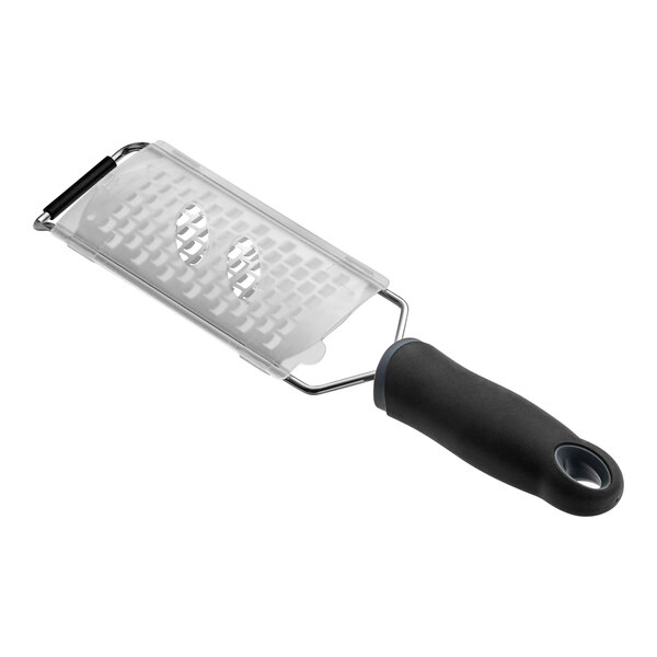 Enhance the flavor and presentation of your dishes with the Fourte 12" stainless steel extra coarse paddle grater with a soft grip black handle.