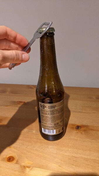 Nice handy bottle opener, easy to clean and easy to use. It’s small and smooth surface, you can put it in you pockets. I recommended.
