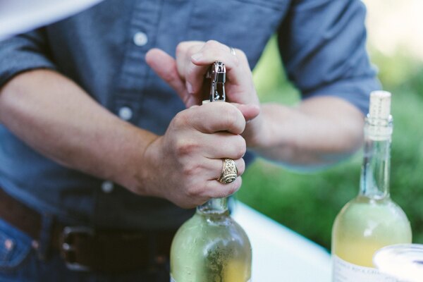 - Position the second notch on the lip of the bottle and pull the cork out