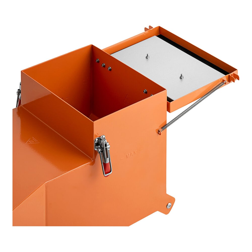 The heat-resistant handles and welded hand shield help prevent burn injuries when using this oil shuttle with warm oil. This shuttle's lid also securely shuts to prevent oil from spilling during transport.