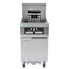 Fry anything from french fries to chicken wings with this Frymaster 31814EF 3 unit floor fryer with CM3.5 controls! A spacious 60 lb. oil capacity per frypot (180 lb. total) combines with powerful cooking and fast recovery technology to provide you with a unit that keeps pace with customer demands on even the busiest of nights. This model boasts renowned CM3.5 controllers that use a smooth touchpad with programmable settings for efficient use. The controllers automatically stretch cook times when needed to provide consistent food quality regardless of the size of the load. Plus, they have countdown timers, LED displays, boil out settings, and audible alarms to make it easier for your busy staff to keep up!