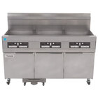 Fry anything from french fries to chicken wings with this Frymaster oil-conserving 3 unit floor fryer with SMART4U 3000 controls! A spacious 63 lb. oil capacity per frypot (189 lb. total) combines with powerful cooking and fast recovery technology to provide you with a unit that keeps pace with customer demands on even the busiest of nights. The SMART4U 3000 controller helps manage and monitor your oil quality, oil life, and general performance of the fryer for the optimal quality of your food.