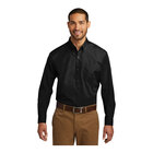 Port Authority W100 Unisex Customizable Deep Black Long Sleeve Carefree Poplin Dress Shirt with Stain Release