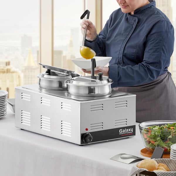 Keep food hot and fresh with this Galaxy 12" x 20" countertop food warmer with adapter plate and inset pots!