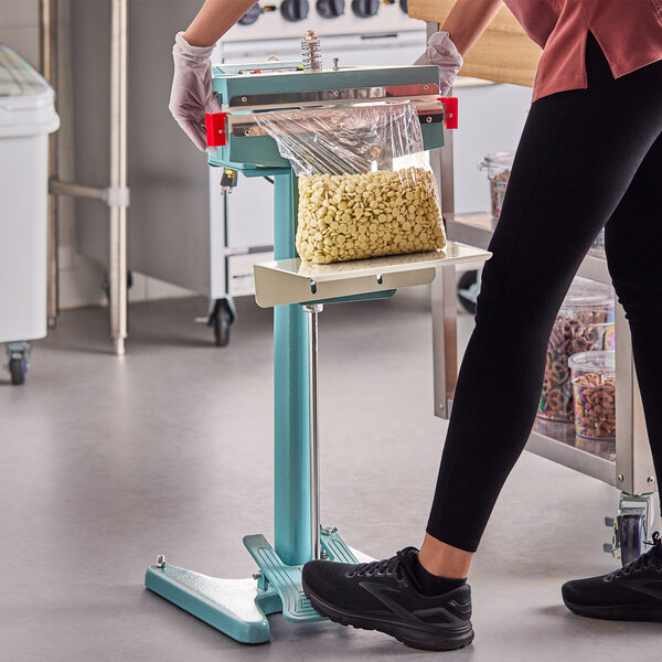 The foot-operated design on this Galaxy bag sealer allows for hands-free operation, increasing efficiency and productivity in your busy workspace.