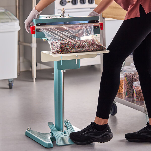 The foot-operated design on this Galaxy bag sealer allows for hands-free operation, increasing efficiency and productivity in your busy workspace.