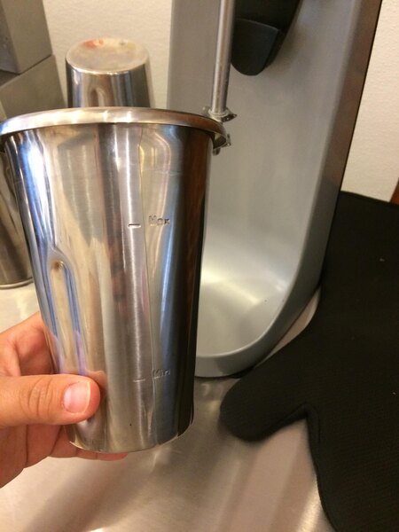 This malt cup boasts a 30 oz. capacity, and has markings to show the maximum (16 oz.) and minimum (4 oz.) fill lines so that you never over-fill the cup.
