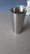 This stainless steel cup works well with drink mixer for malts and shakes, make sure you rinse out cup immediately so ingredients don't harden on bottom of cup.