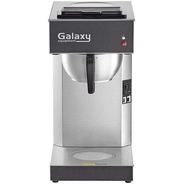 I have been using this coffee maker everyday for about a month. It is a well designed, good looking machine. The temperature of coffee/water right before it hits the decanter is a consistent 205 degrees F. My only complaint is that the power lights are very dim on the switches, so it is easy to leave on. This machine uses a standard 15AMP outlet so it can pretty much go anywhere there is a standard outlet. This unit does not come with decanters, but pairs well with the 64oz Webstaurant store decanters (or probably any 64oz standard decanter) I was confused about ordering the coffee filters as I couldn't find the exact model or dimensions, so I got a few different ones and found that the 9 3/4" x 4 1/4" 12 Cup Coffee Filters fit this machine well