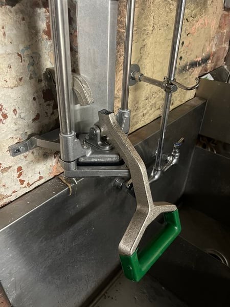 Mounting the cutter to a wall saves valuable countertop space and accommodates high volume cutting into bulk containers. The vertical orientation uses gravity to make cutting even easier!