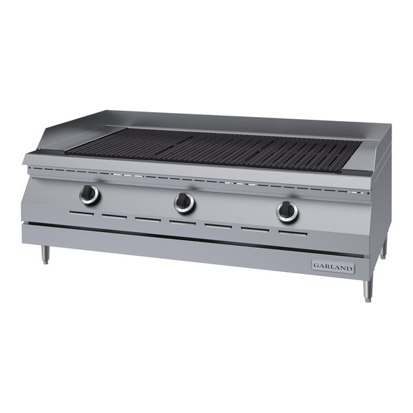 With a 34 1/2" x 19" cast iron cooking surface, the top of the line Garland ED-42B 42" charbroiler provides the space you need to cook chicken, fish, hamburgers, and more! This charbroiler features three infinite temperature controls which heat different sections of the cooking surface to prepare different foods simultaneously, or allow you to use only one or two during non-peak hours for energy-efficiency. Controls are protected from drips and splashes by a recessed construction while an easily accessible grease drawer is concealed behind the lower hinged panel. A grate lift handle makes removing the grate for cleaning a breeze. It requires a 240V, 3 phase electrical connection.