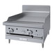 For increased flexibility in your commercial kitchen, the griddle is made of 5/8" thick steel and features a wide range of hi / low, valve-controlled temperature settings, delivering 18,000 BTUs of cooking power for every 12" section (36,000 BTU total). 4" adjustable metal legs come standard on this unit for counter mounting.