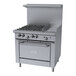 For increased flexibility, its 12" griddle is made of 5/8" thick steel and features a wide range of temperature settings, delivering 18,000 BTUs of cooking power for every 12" section. The griddle's high splash guards and a 4 1/4" wide grease trough provide optimum runoff control. Offering even more kitchen versatility, this range's standard oven has 32,000 BTUs of cooking power and a fully porcelainized interior to deliver best-in-class cooking evenness and recovery time. For added convenience, the oven fits standard sheet pans in both directions to ensure precise cooking evenness.