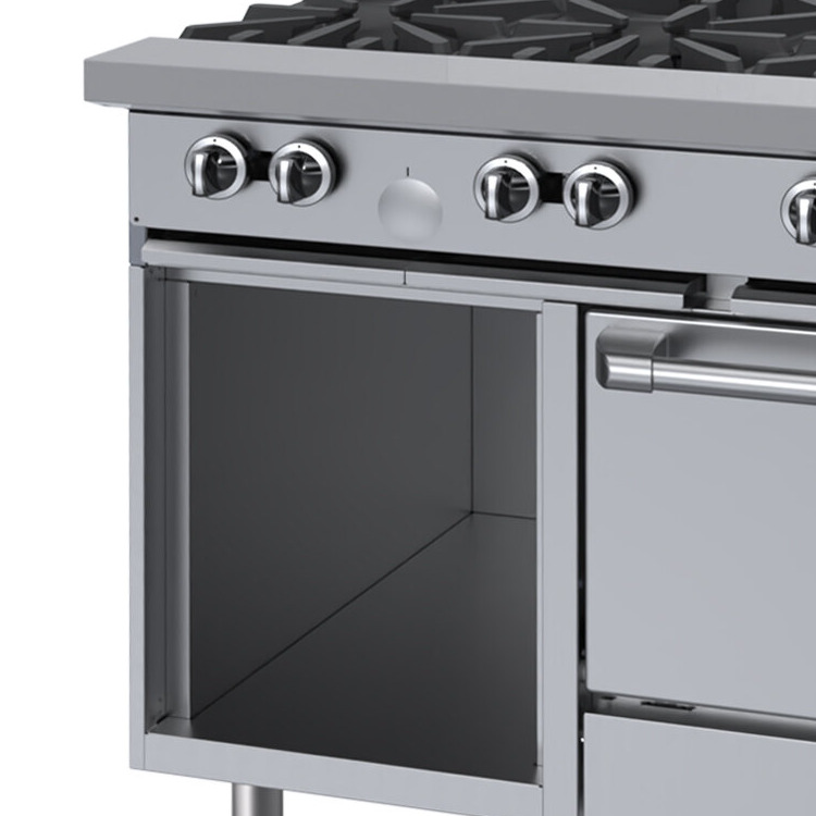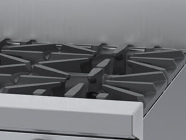 The standard oven features a robust 32,000 BTU "H" style cast iron burner. The G48-8RS has an easy-to-modulate snap-action oven thermostat with a temperature range from low to 500 degrees Fahrenheit. This wide temperature range with precision adjustment means you can use the oven for holding, as well!